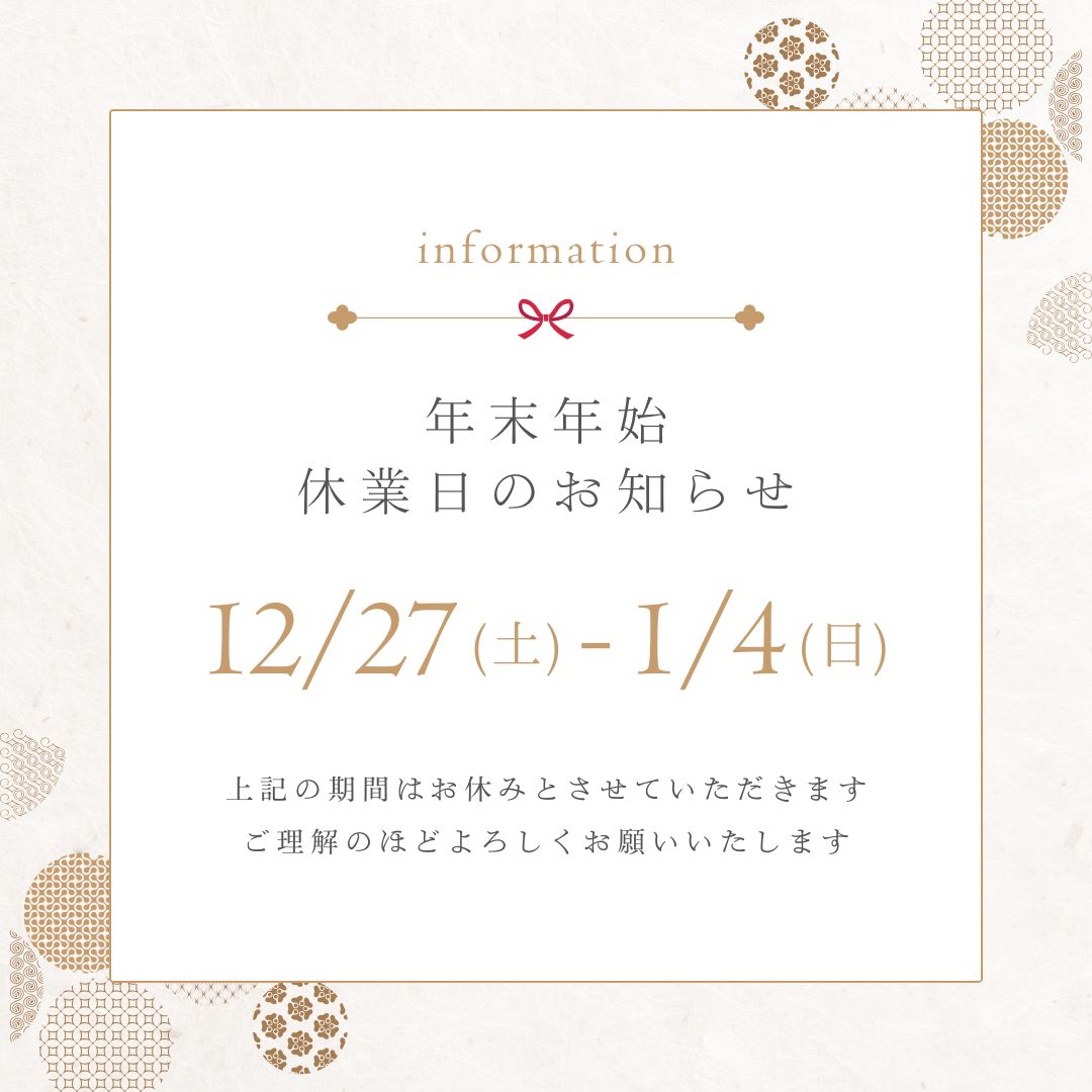 年末年始 休業日のお知らせ