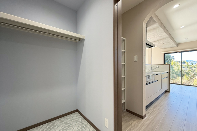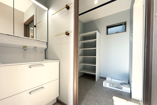 脱衣所↔クローゼット↔パントリー↔LDK↔玄関のラウンド動線