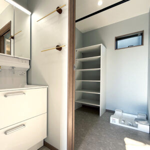 玄関の前に洗面コーナー、脱衣所とリビングに汚れを持ち込まない間取り