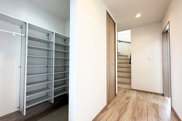 晴れの日にはバルコニー、雨の日には脱衣所やホールで洗濯物を干せる
