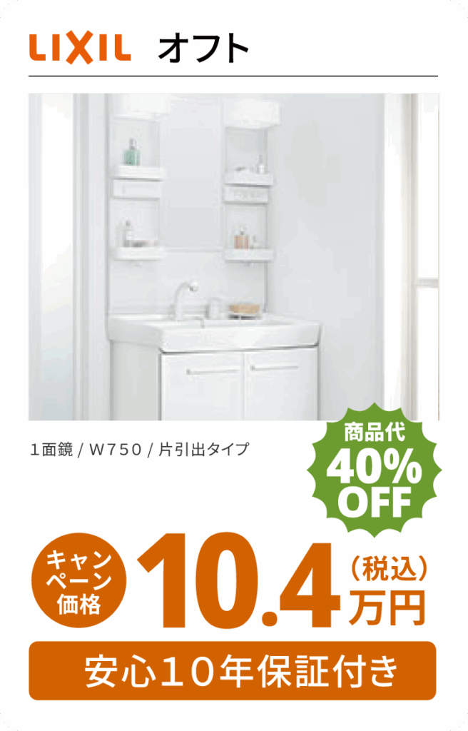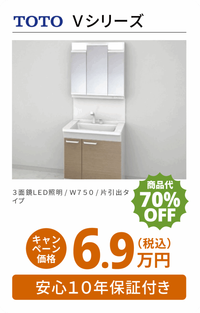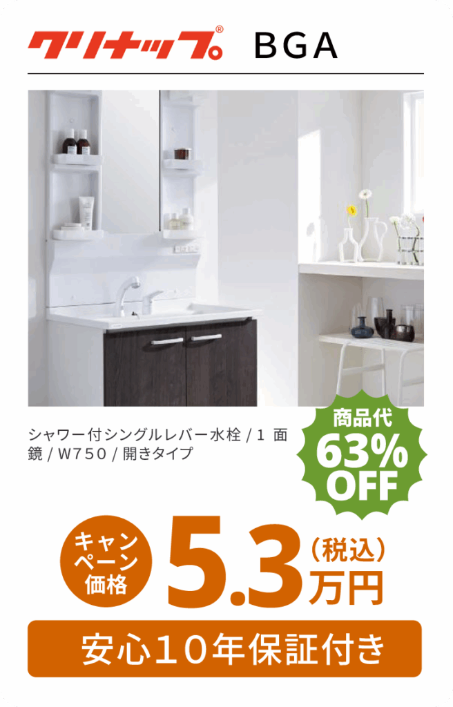 洗面化粧台リフォームパック5.3万円(税込)