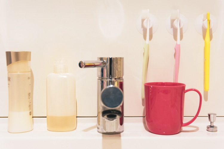 家族分の歯ブラシ、ドライヤーやスキンケア用品などで、ごちゃごちゃしがちな洗面化粧台。